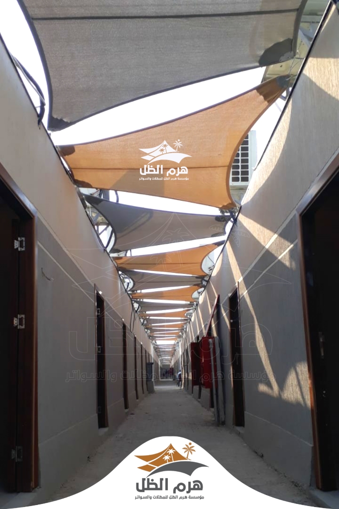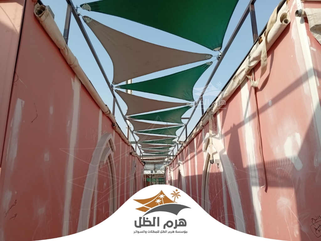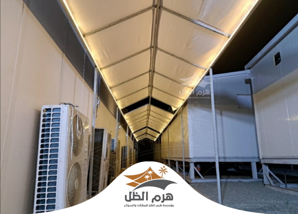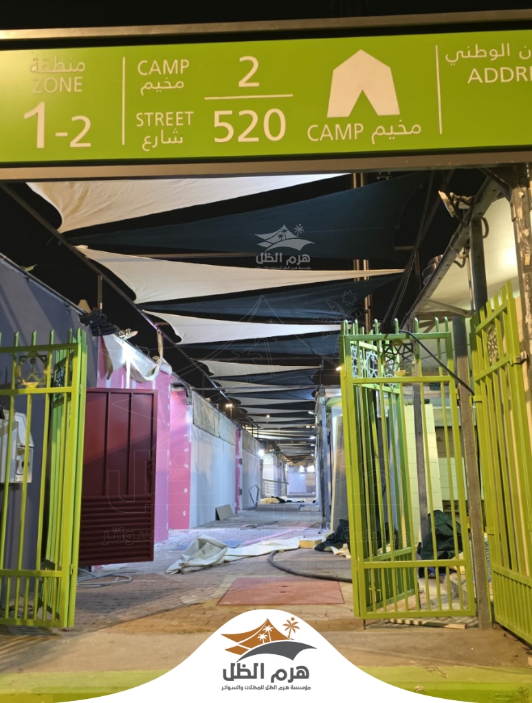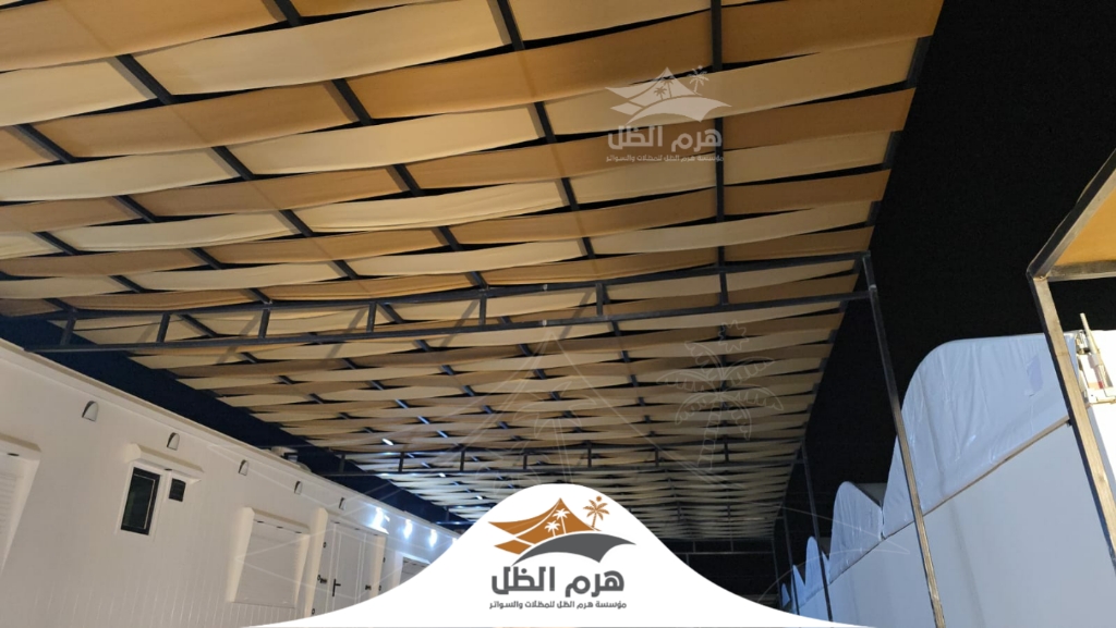 مؤسسة هرم الظل تنفذ أعمال الممرات ومظلات الممرات في عرفات ومنى بمكة المكرمة، بجودة عالية وتجهيزات مناسبة للمشاعر المقدسة.